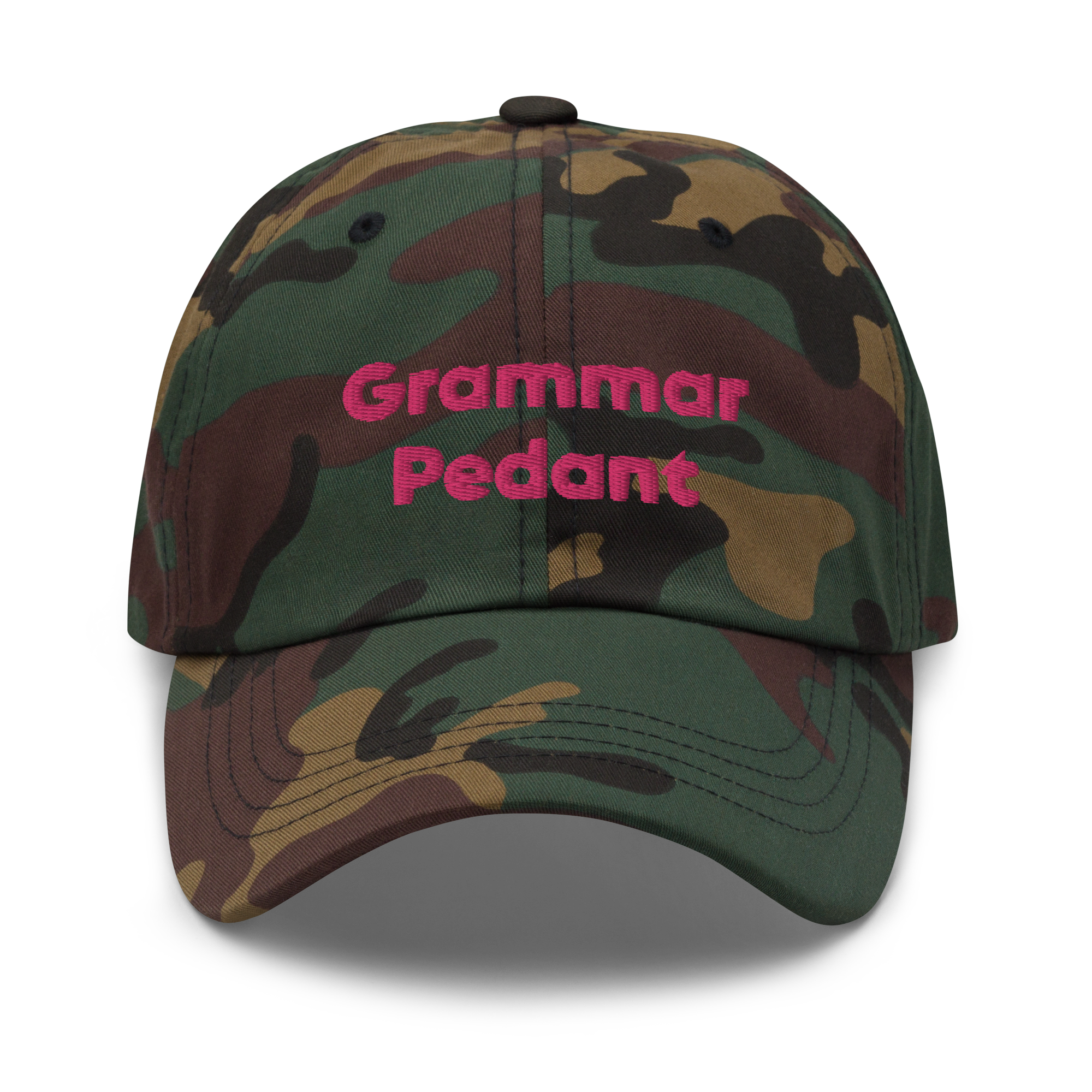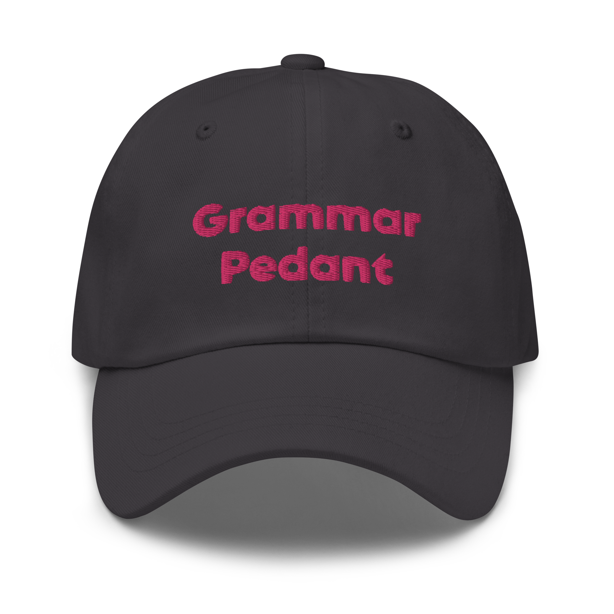Dad hats aren’t just for dads. And, certainly not “Grammar Pedant” hats. This one’s got a low profile with an adjustable strap and curved visor.