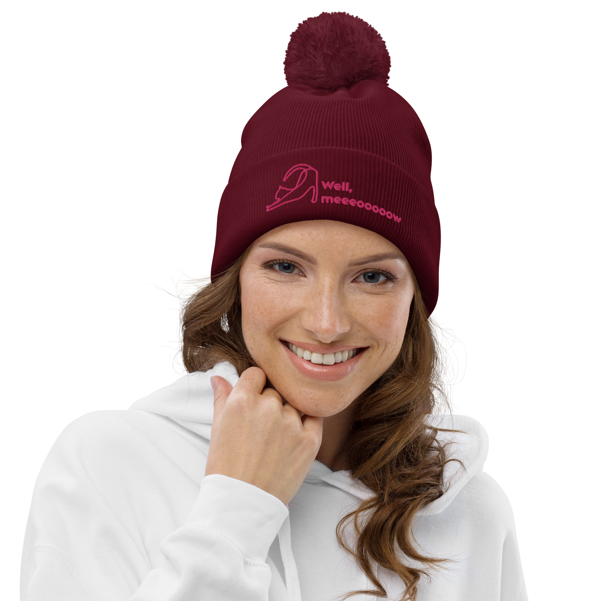 Say ‘hello’ in your own inimitable, seductive way with this “Well, meeeooooow” pom pom beanie with a sophisticated stretching pussycat icon. Made from 100% soft-touch acrylic, this beanie feels incredibly soft and will keep you cosy and warm – ideal for those chilly autumn days, cold winter evenings, hot summer nights – you see where we’re going with this…