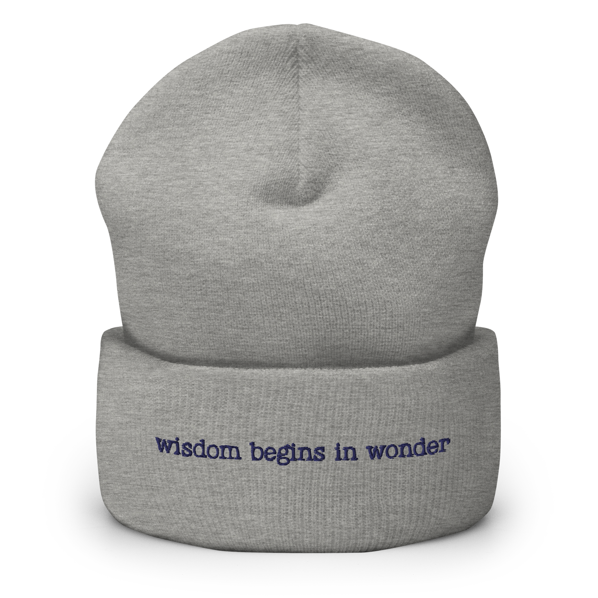 Make a statement with this “wisdom begins in wonder” IQ – inspired quote – cuffed beanie. It’s a snug, form-fitting hat that’ll warm your heart as well as your head, and makes a great gift for the people you love too!